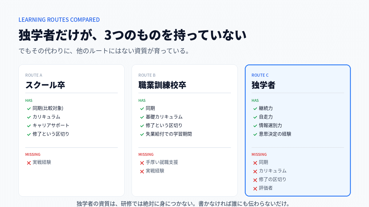 スクール卒・訓練校卒には"ある"のに、独学エンジニアにだけ無いもの