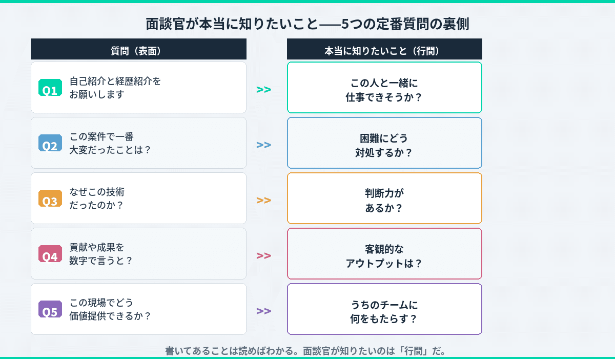 面談で必ず聞かれるスキルシートの行間——5つの定番質問と準備の型
